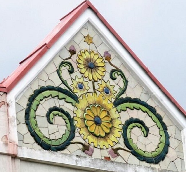 - Здание бывшего банка — украшено майоликовыми панно