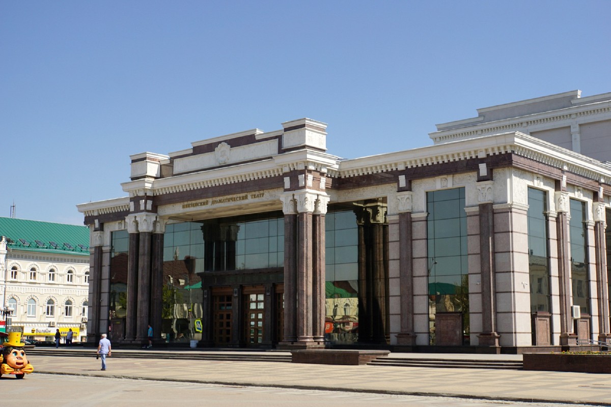Завершим прогулку у Театральной площади, где прошлое и настоящее Пензы встречаются под сводами «храма искусств».