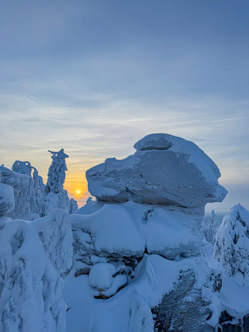 Вместо прогулки по реке и треккинга вы доберётесь до вершины Усьвинских столбов на санях за снегоходами (остальная часть программы остаётся неизменной). Снегоходом управляет снегоходист, за доплату это можете делать вы — уточняйте детали в переписке.