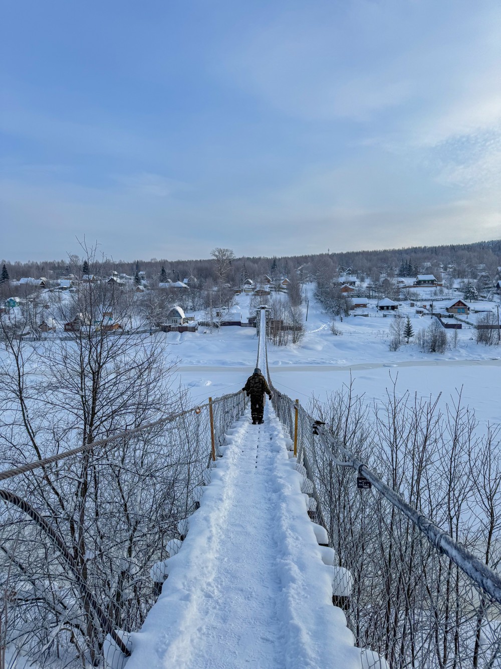 Здесь выстроили масштабные деревянные декорации для съёмок фильма по роману Алексея Иванова. Неподалёку находится самый длинный в Пермском крае пешеходный подвесной мост. Пройти по нему тот ещё экстрим: мостик дрожит и раскачивается при каждом шаге. Боишься, но идёшь, потому что одновременно со страхом испытываешь восторг, совсем как в детстве на аттракционах. Страшно весело!