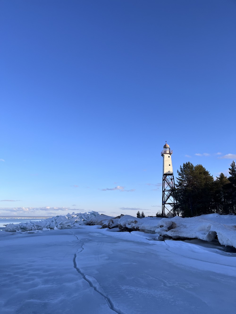 Пройдёте пешком около 6 км по живописной дороге к берегу Онежского озера. Наша цель — одинокий маяк