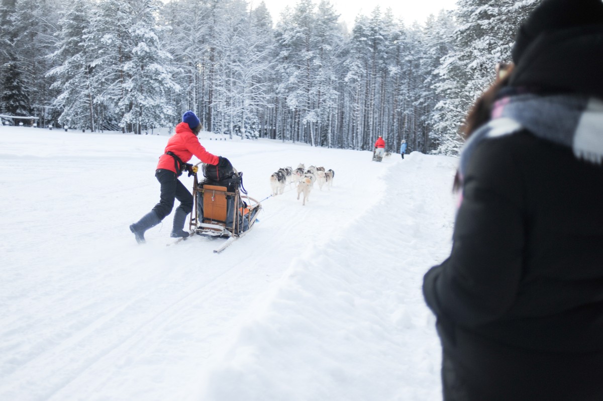 15:00 — резиденция Талвиукко. Посещение питомника хаски, оленьей фермы и саамской деревни. Прогулка с собаками, катание на упряжках (доп. плата)
