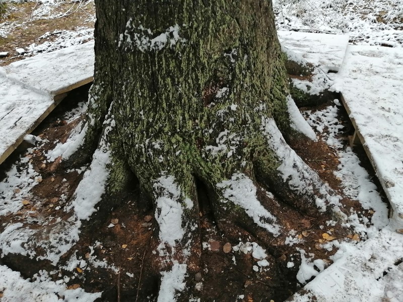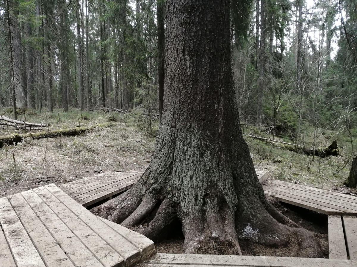 После мы заглянем к 180-летней ели высотой целых 35 метров. Даже у двух взрослых мужчин не получится её обнять.