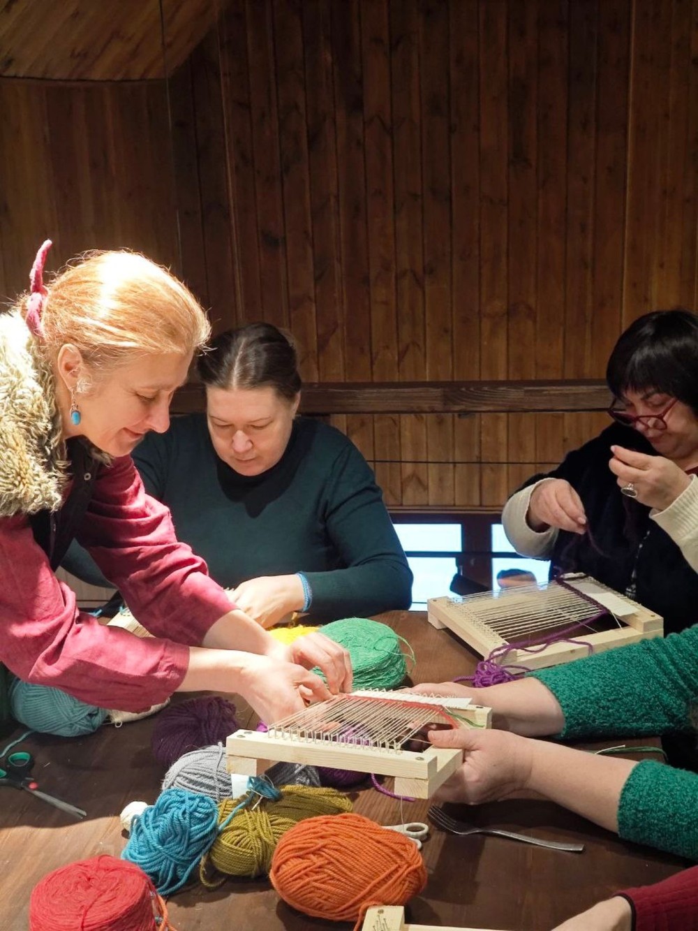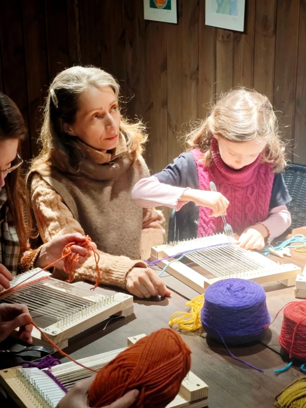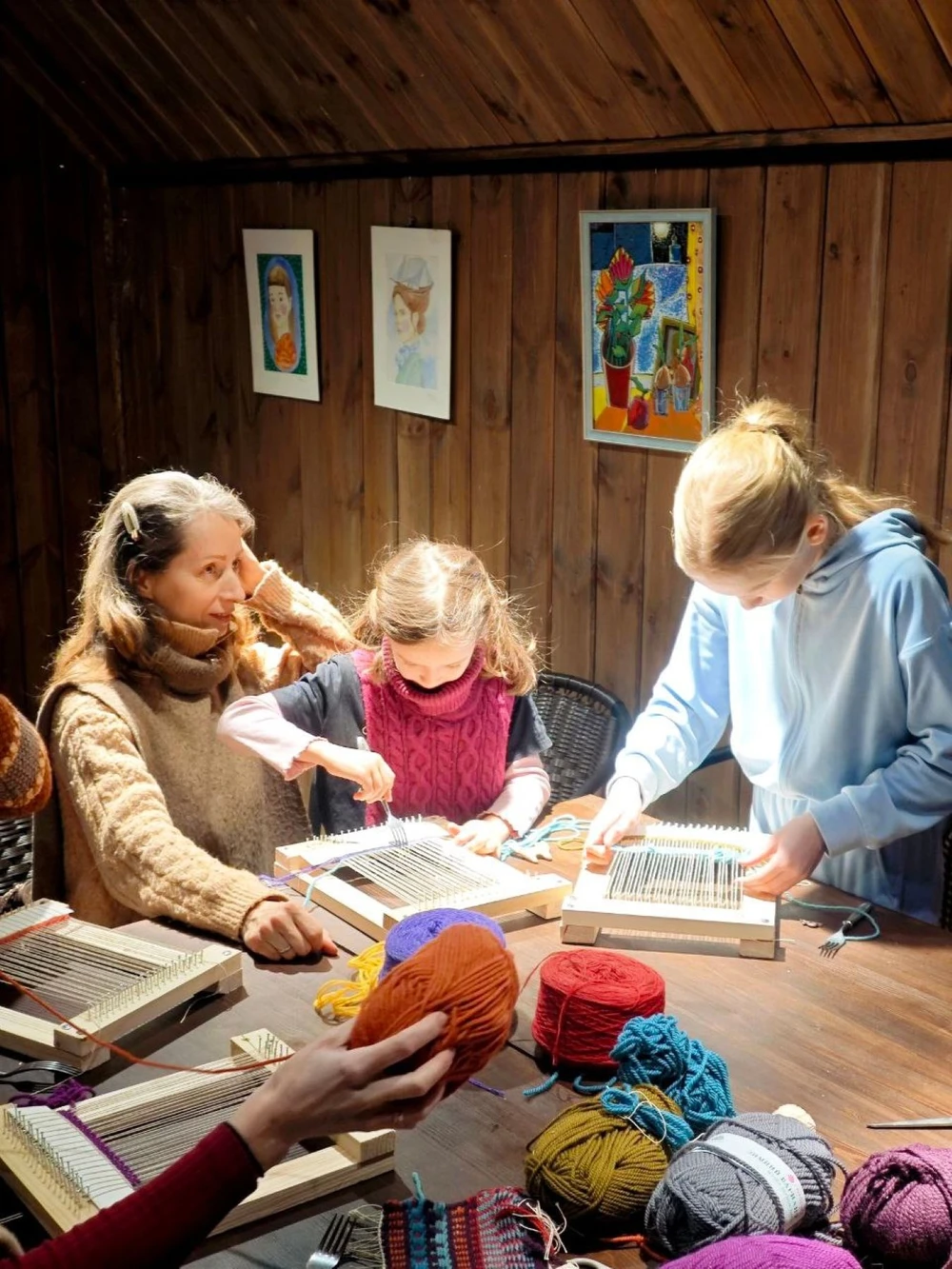 - на небольших ткацких рамках вы создадите свою работу или сделаете несколько рядов для общего творения