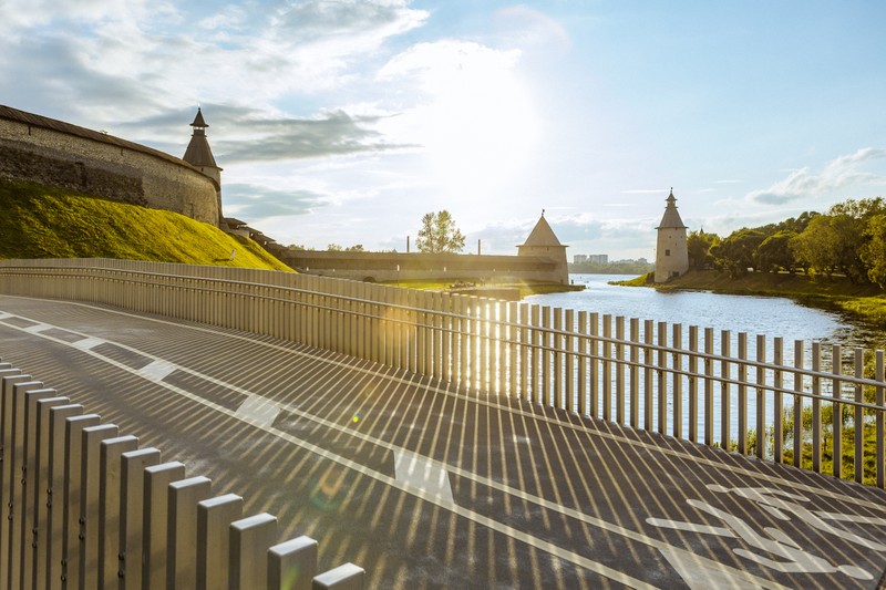 Возле Гремячей башни — самой таинственной из всех псковских башен — вы сможете выбрать, какая из связанных с ней легенд нравится вам больше и причем здесь Гоголь. Узнаете, как получилось, что мост из Троицкого стал Советским, а набережная из Американской — Золотой. Попробуете разглядеть остатки «водосвятного треугольника» и выясните, почему Гельдтова баня, стоящая по центру, до сих пор считается особенной. А закончится прогулка у самого хрестоматийного вида нашего города — слияния рек Псковы и Великой.