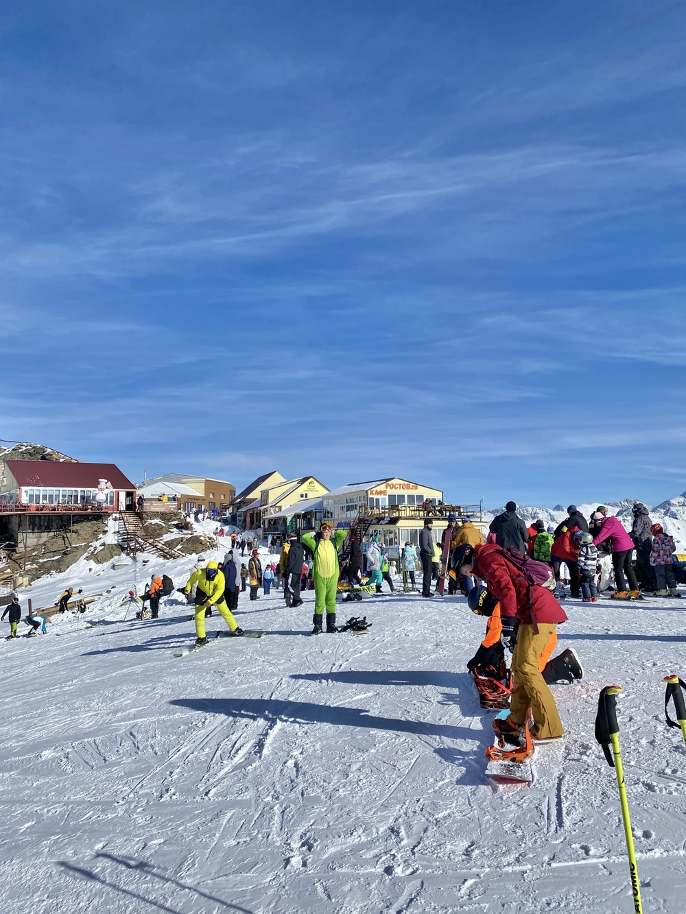 - Домбай. Это курортный посёлок, окруженный горными ущельями. Здесь мы дадим вам свободное время. Вы сможете прокатиться по канатной дороге, насладиться шикарными видами, попробовать кавказскую кухню и просто погулять