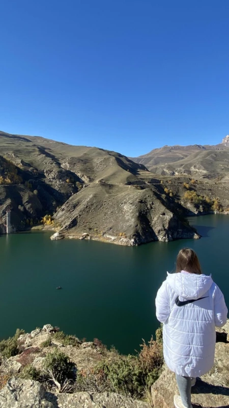 Ненадолго остановимся на завтрак в кафе с кавказской кухней. Затем отправимся к озеру Гижгит — дорога к нему проходит по горному серпантину, а цвет воды действительно поражает.