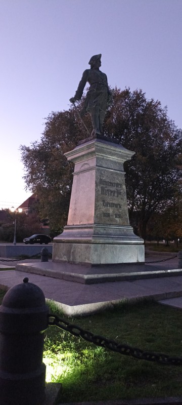 А после поднимемся к памятнику Петру I, откуда открывается великолепный вид на море, порт и загадочный насыпной остров «Черепаха».