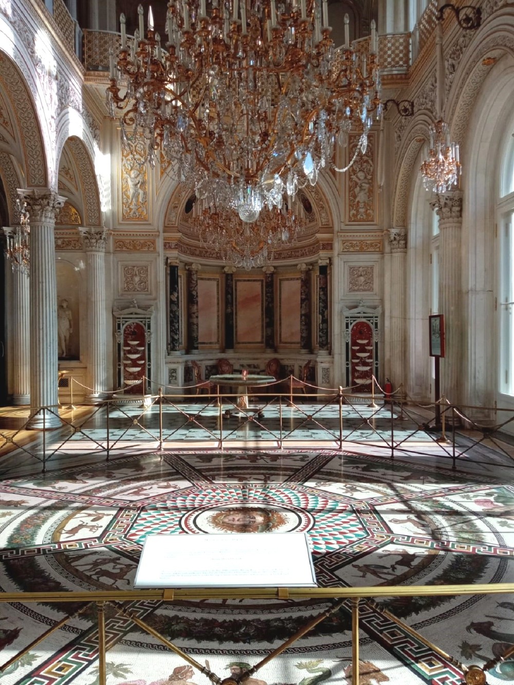 Начнём с осмотра парадных залов Зимнего дворца: это Иорданская лестница, Георгиевский (Большой тронный) зал, Фельдмаршальский, Петровский и Гербовый залы, Военная галерея 1812 года, Малахитовая гостиная. Каждый не останется для вас лишь нарядным интерьером — но оживёт в ценных деталях, в исторических и бытовых сюжетах дворца.