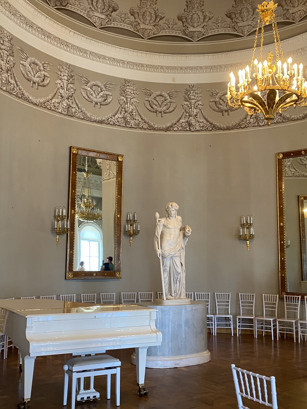 - Белоколонный зал — пространство для торжественных приёмов и балов. Вы рассмотрите изысканную лепнину, зеркала и люстры