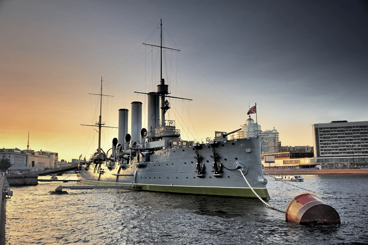 - Крейсер «Аврора» — один из старейших в истории сохранившихся паровых военных кораблей (остановка 10 мин )