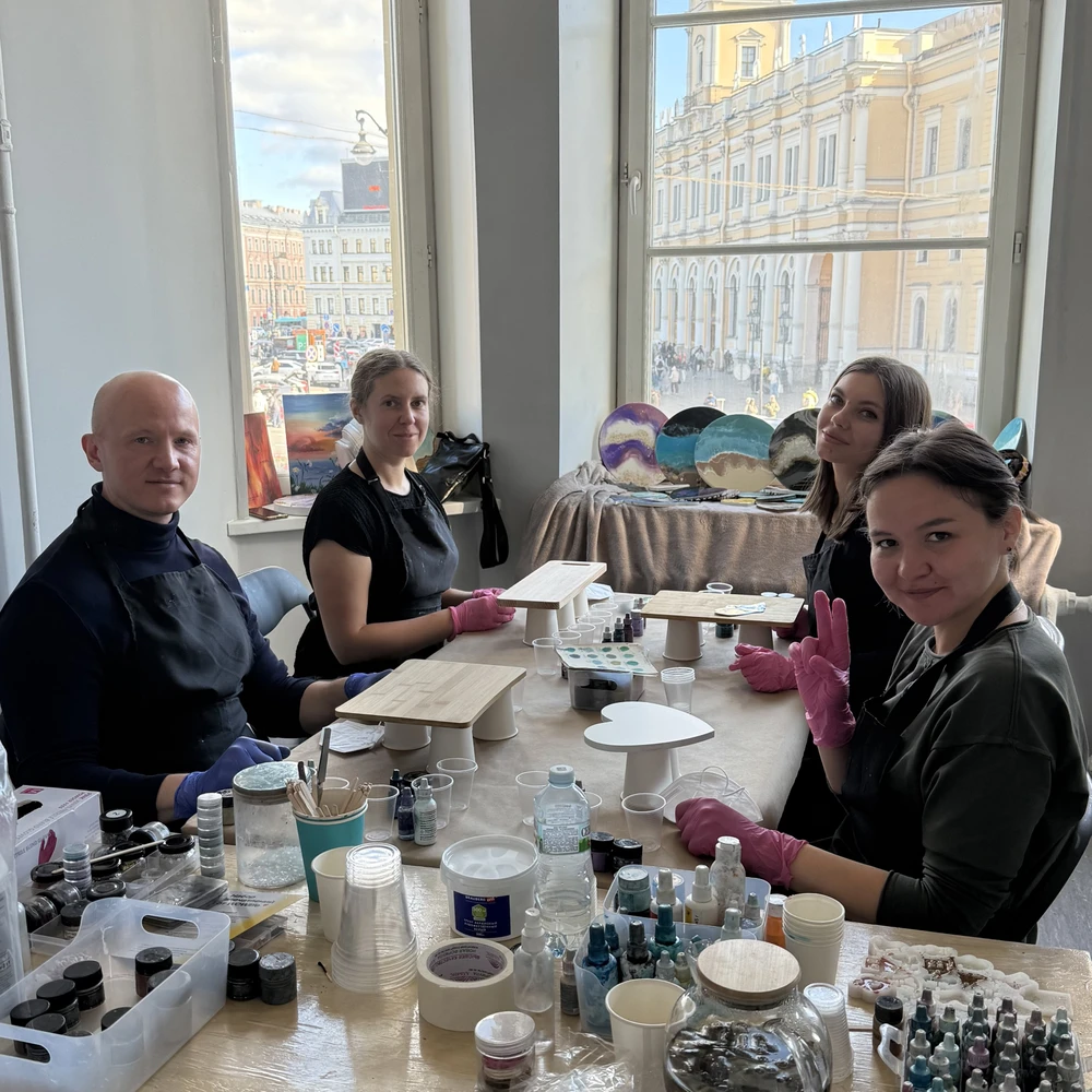 Наша мастерская (с отличным видом на площадь Восстания и Московский вокзал) — это настоящий оазис творчества, где каждый может создать эксклюзивные изделия из эпоксидной смолы и не только.