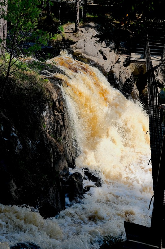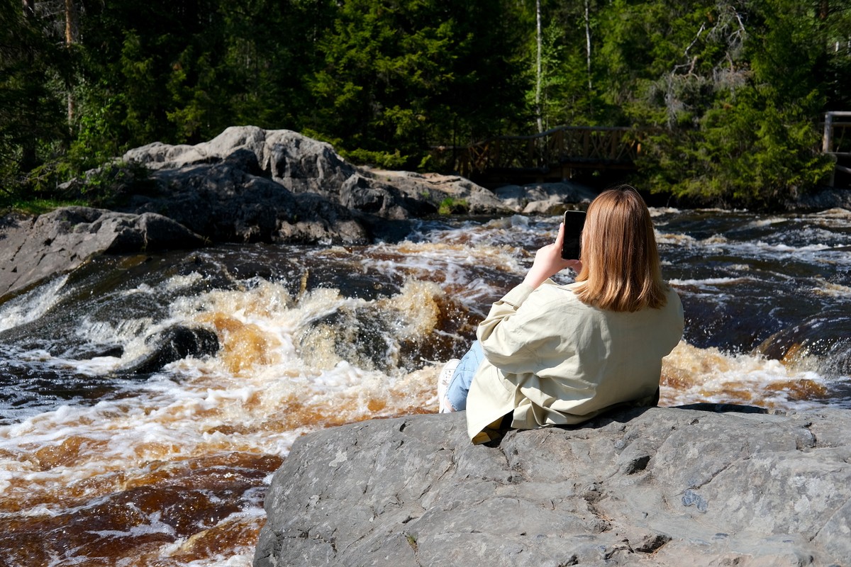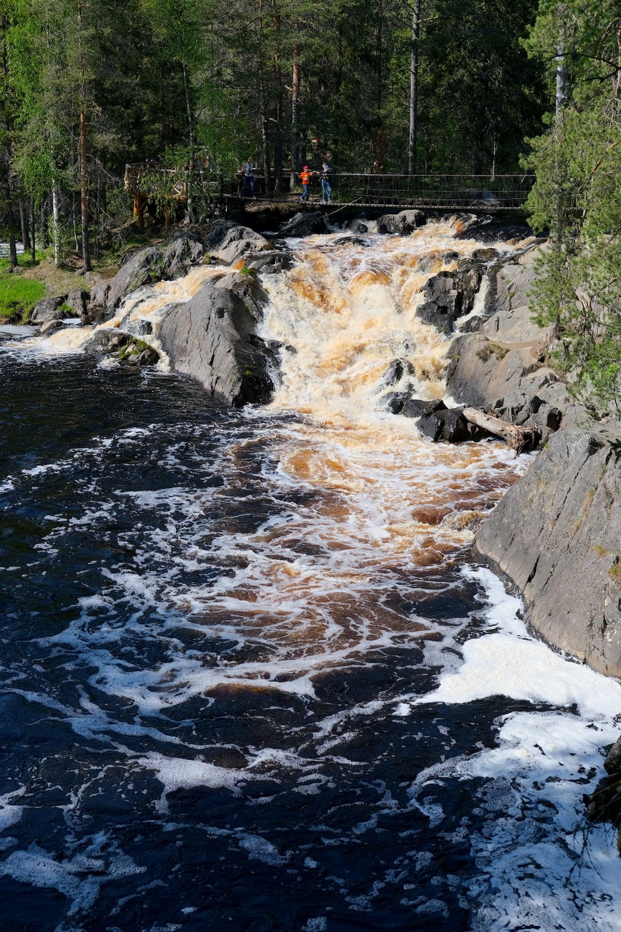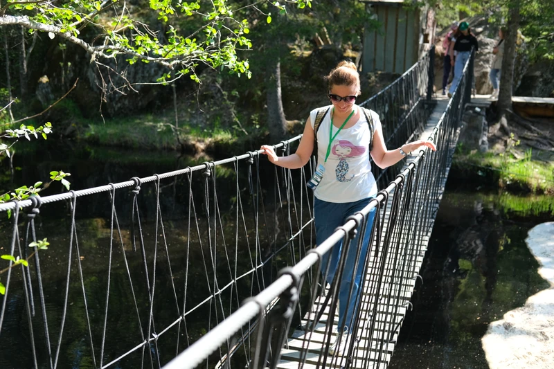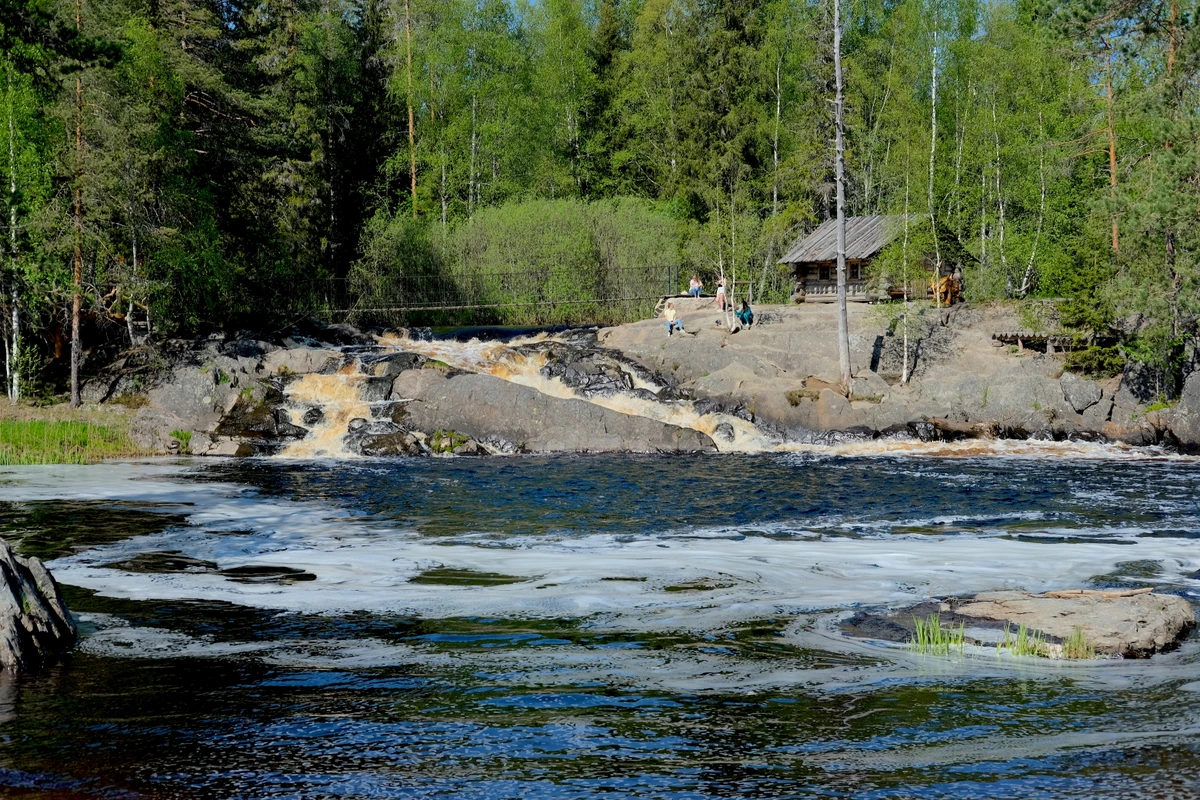 Водопады Ахинкоски и прогулка по подвесным мостам (вход на экотропу оплачивается дополнительно по желанию). Вы окажетесь внутри кинодекораций, где снимался фильм «А зори здесь тихие…». А на затерянной среди сосен «Аллее сказок» можно встретить загадочных лесных духов и героя карело-финского эпоса. С подвесного моста открывается самый эффектный ракурс для фото.