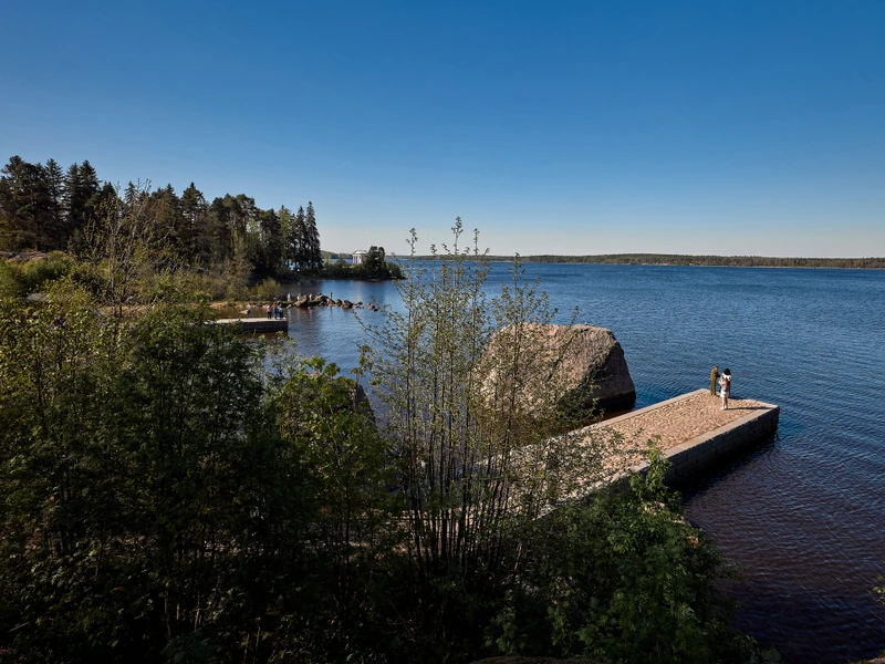 Часовая прогулка на комфортабельном катере по заливу. Вы полюбуетесь панорамами парка «Монрепо» с его уединенными бухтами и гранитными скалами.