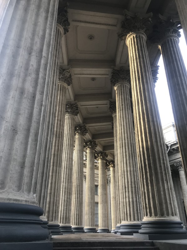 Казанский собор. На его возведение ушло всего десять лет. Это настоящий рекорд скорости строительства такого объёма для начала 19 века. Что ему способствовало — узнаете на экскурсии.
