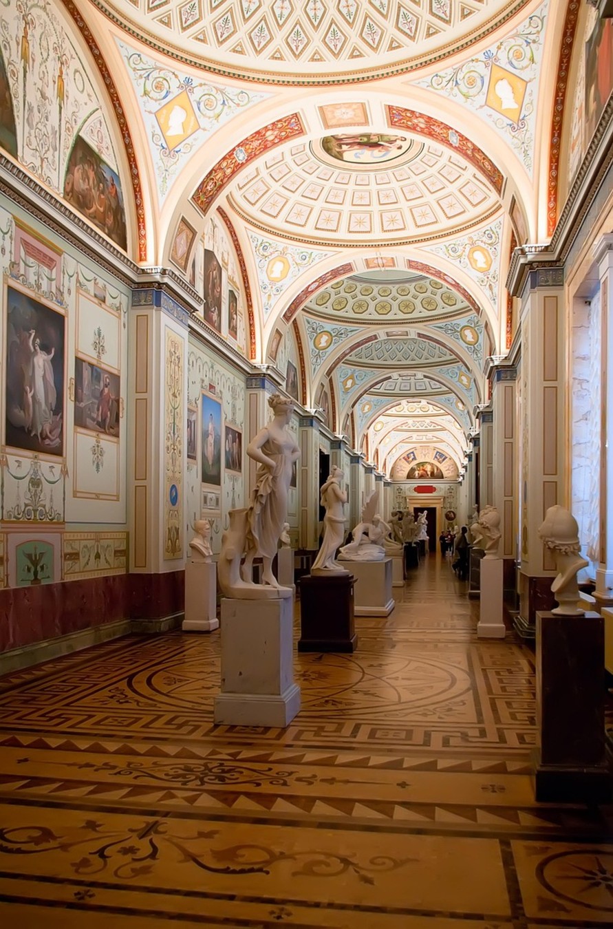 Мы начнем с парадной Иорданской лестницы, которая ведет к экспозиции западноевропейского искусства. Здесь вы полюбуетесь мастерами эпохи Возрождения и вникнете в детали работ Леонардо да Винчи, Рафаэля и Тициана. В рыцарском зале осмотрите доспехи разных эпох. Также вас ждут голландские живописцы — виртуоз светописи Рембрандт и Рубенс, основоположник барокко. А после вы исследуете коллекцию античного искусства и раскроете тайны саркофагов и забальзамированных мумий в египетском зале.