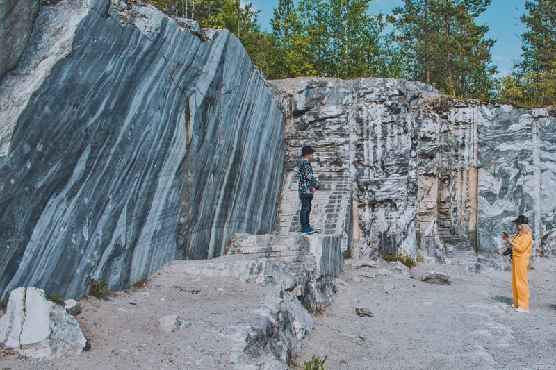 Рускеала. Вот оно, наше главное место назначения. Ради него стоило потерпеть долгую дорогу! Вы полюбуетесь узорами мрамора и насыщенным цветом воды в карьере, пройдёте по маршруту от старой шахты через грот и Итальянский карьер к утёсу Импи. Если захотите, то спуститесь в мраморные подземелья с экскурсией или прокатитесь на зиплайне.