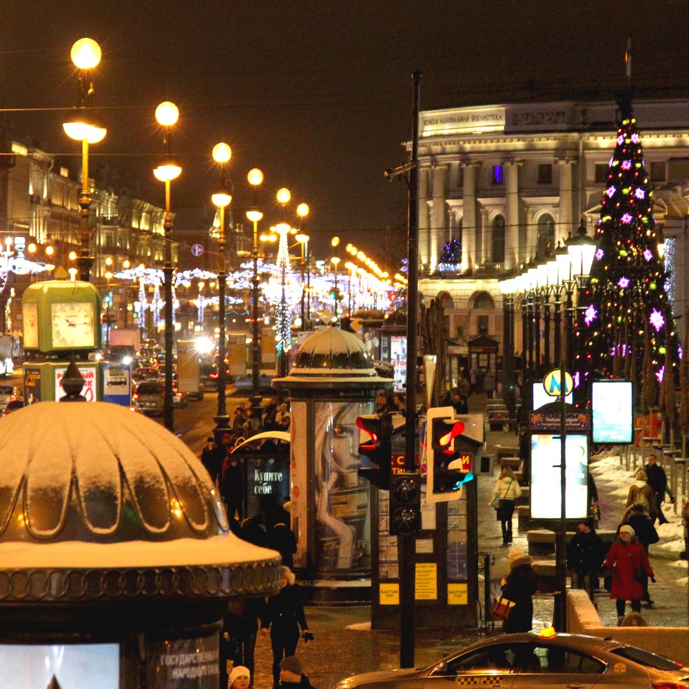 - Невский проспект с его пышными фасадами, Казанским собором и домом Зингера.