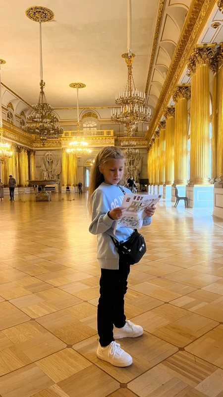 " Заинтересовать ребёнка в музее и помочь ему запомнить — задачи сложные. Решить их вам помогут мои авторские квесты! Эрмитаж превратится для вас в таинственный лабиринт, полный загадок и секретов. Вам с детьми предстоит пройти испытания, собрать ключи и выбраться. В своём темпе вы погуляете по самым красивым залам дворца, узнаете его историю и, играя, погрузитесь в мир искусства. "