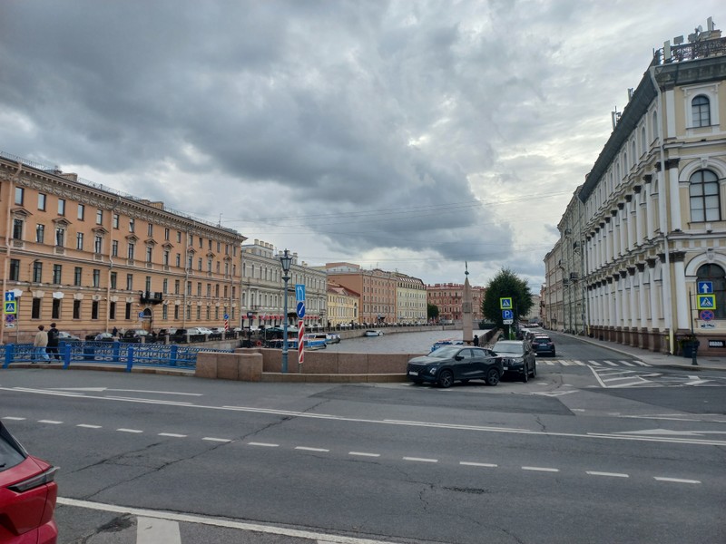 - Остановимся у зданий бывших министерств, между которыми прячется Синий мост — самый широкий в городе