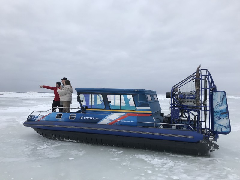 Зимой проводятся морские прогулки по льду на комфортной крытой лодке «Север». Летом можно покататься на катере. Маршрут и продолжительность оговариваются индивидуально. Стоимость от 3500 ₽ с человека.