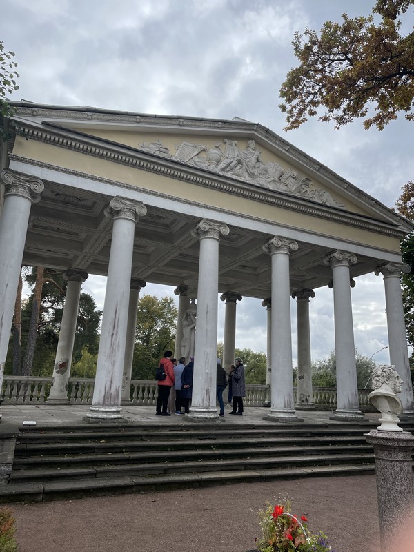 Екатерининский парк. Вы прогуляетесь мимо павильонов Грот, Кавалерские и Верхние Ванны, Камеронова галерея, Агатовые комнаты, Эрмитаж. Узнаете, как и для чего их построили, отыщете «хижину отшельника». Увидите места, где Екатерина II любила посидеть с чашечкой кофе и послушать военные марши.