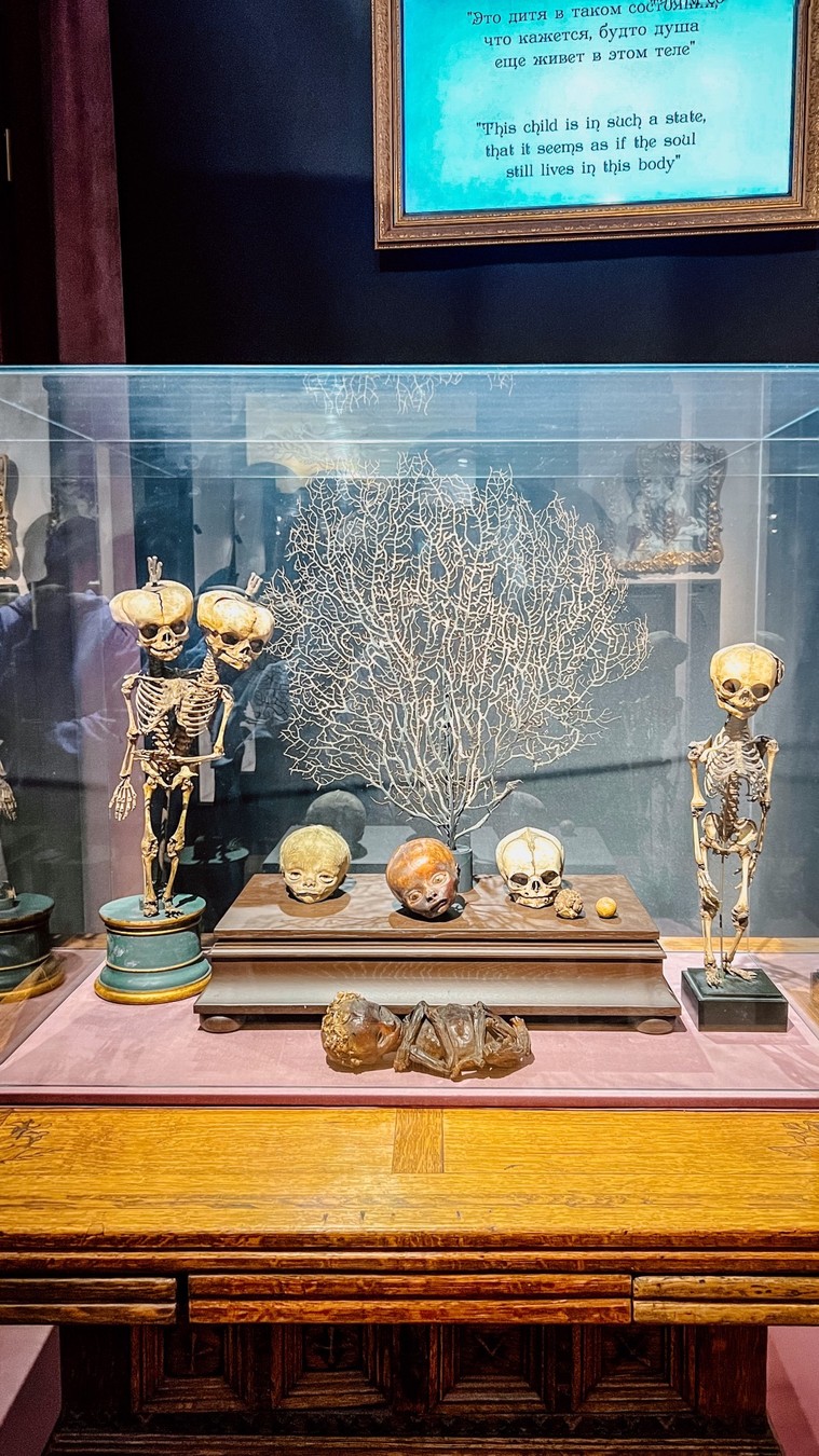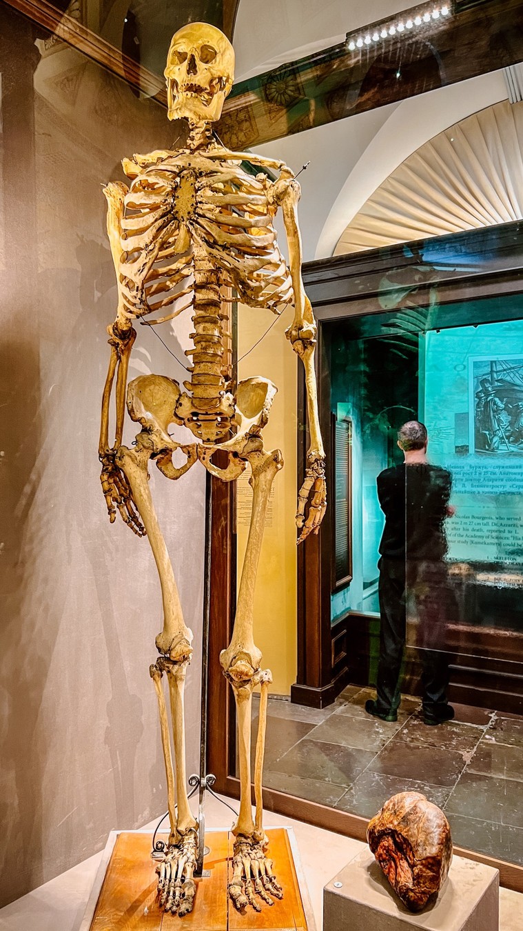 Вы исследуете один из старейших музеев Северной столицы. Осмотрите знаменитую коллекцию экспонатов с ярко выраженными аномалиями. Увидите детский скелет с двумя головами и скелет лакея Петра I, рост которого составлял целых 227 см.
