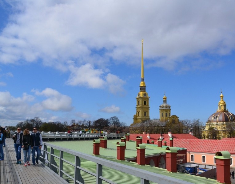 - Затем мы поднимемся на стену крепости и насладимся панорамой города и знаменитой «небесной линией» Санкт-Петербурга