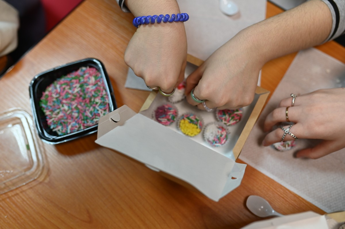Когда сладкий шедевр будет готов, вы положите его в подарочную коробку, красиво подпишете, перевяжете лентой и заберёте с собой. Подарите кому-то или себе — на ваш выбор!