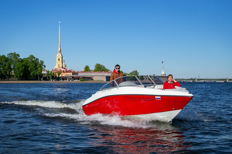 Прогулка проходит на комфортабельном катере открытого типа. На борту есть кожаные диваны, установлена мощная аудиосистема и подсветка салона для вечерних катаний. Катер оборудован мощным мотором, что позволяет быстро мчаться по водной глади Невы. Во время прогулки капитан покажет вам достопримечательности, а аудиогид расскажет информацию о них. Итак, в программе: