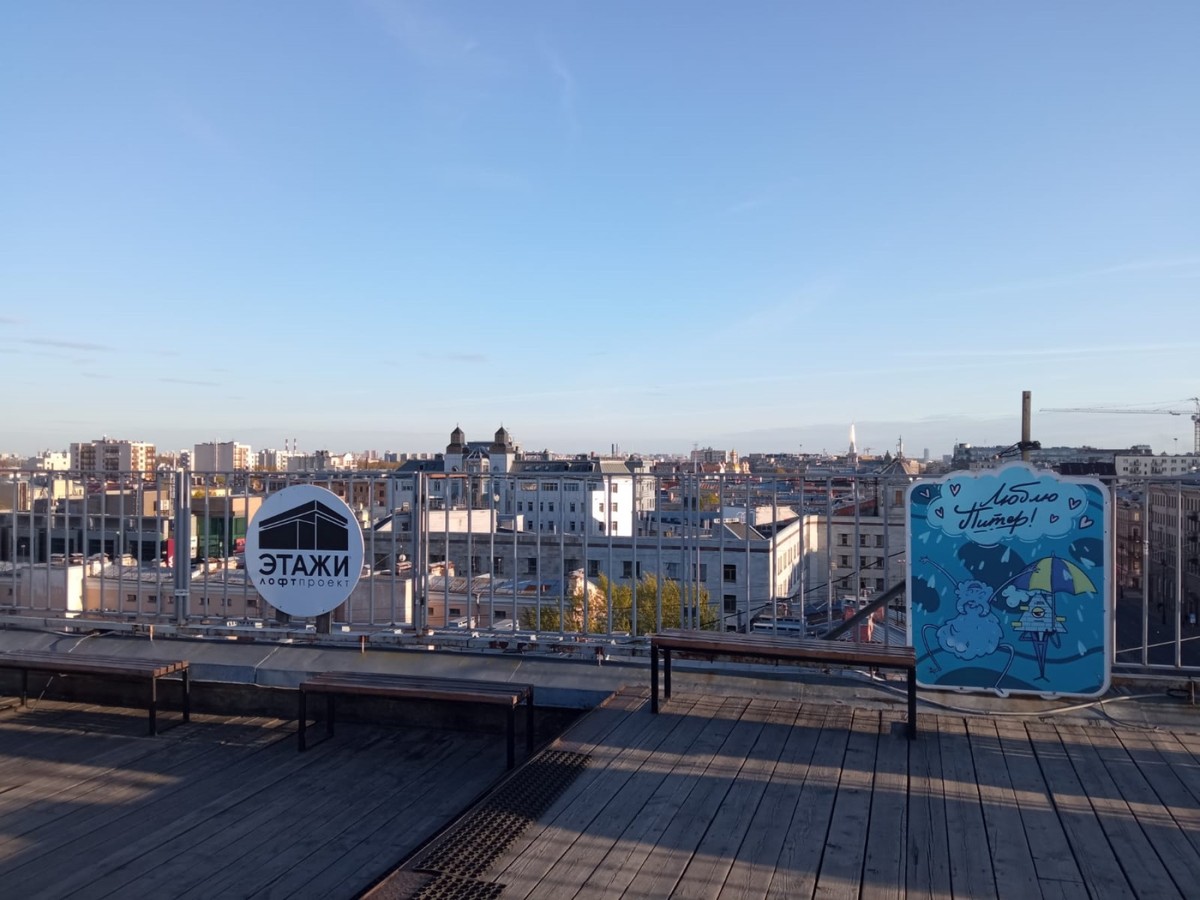 - Лофт-проект «Этажи» — пионер лофт-дизайна на территории бывшего Смольнинского хлебозавода. Здесь выставляются художники, скульпторы и фотографы. Погуляем по крышам с видами на соборы, купола и старую застройку