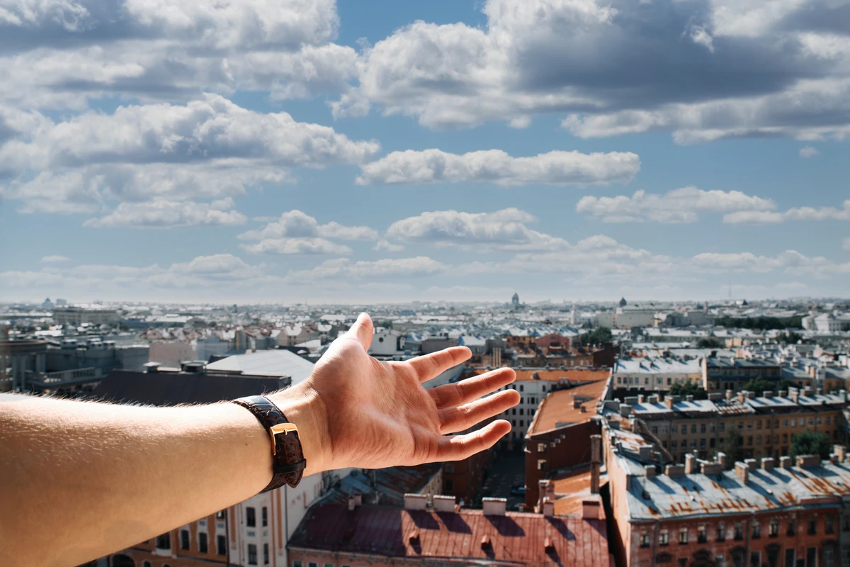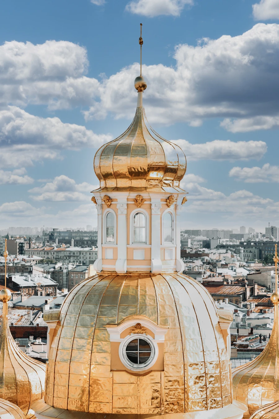 Каждый шаг по старинной лестнице приближает вас к городу, каким его видят только свои — без фасадов и фильтров. Перед вами раскроются купола соборов, крыши Невского и сияющий «Лахта-центр». Здесь ветер, закат и панорама — не декорация, а сцена, где Петербург играет самого себя.