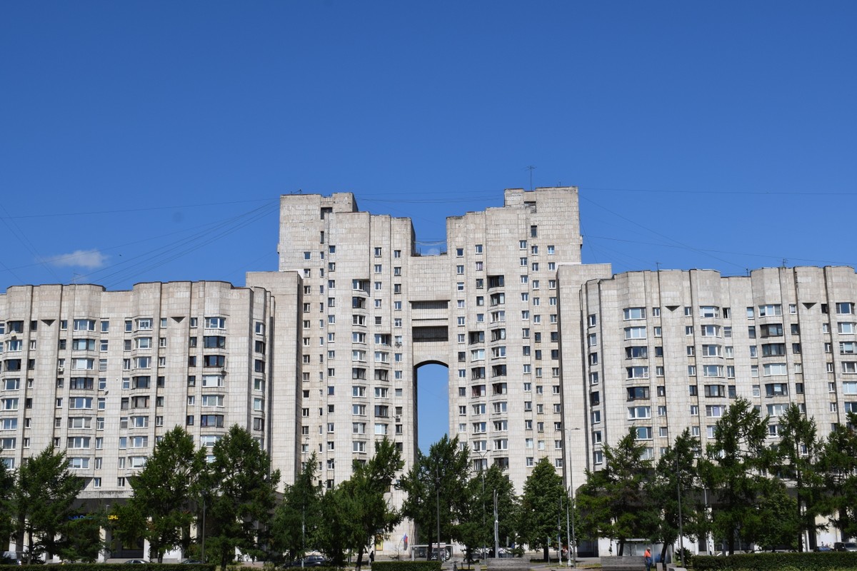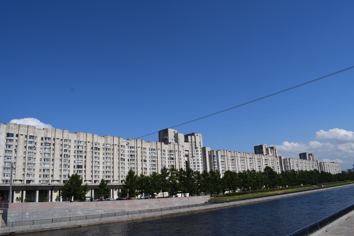 • Новосмоленская набережная. Посмотрим на самый длинный дом Петербурга — 750 метров — и построенные в середине 1980-х «Озёрные аркады», напоминающие о Версале. На первом этаже расположился Центр фирменной торговли, на открытии которого у Михаила Горбачева случился конфуз с одной из посетительниц.