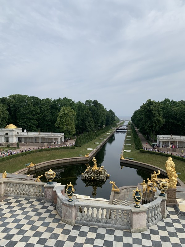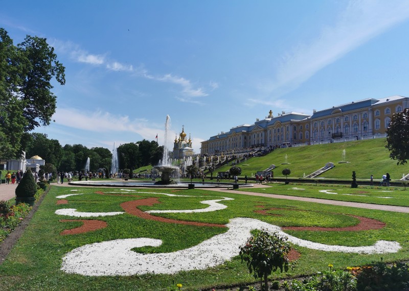 - почему на фасаде Екатерининского дворца почти не осталось позолоты, а одну из башен Петергофа венчает трёхглавый орёл
