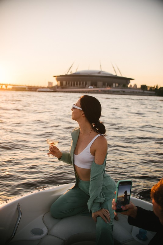 " Петербург с воды — совсем иной город. А его «новая география» с впечатляющим вантовым мостом через Корабельный фарватер, роскошной «Газпром Ареной» и «Лахта-центром» рискует стать самым востребованным направлением. Финский залив, закат, игристое, катер — конечно, да! "