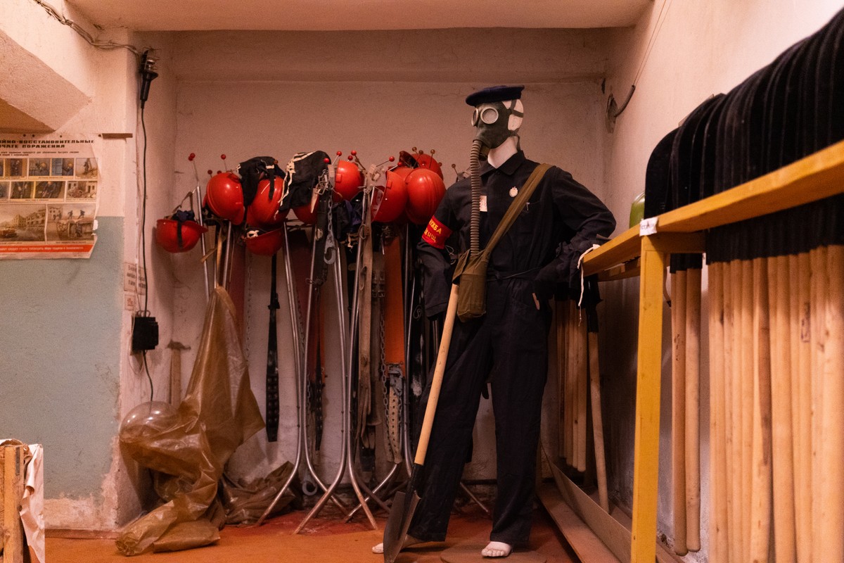 Мы минуем железобетонную оболочку, которая обязана сдержать ударную волну, и окажемся в убежище. Рассмотрим плакаты с инструкциям, дозиметры, противогазы и прочие средства защиты. Люди должны были не только безопасно жить под землей, но и иметь возможность добывать свежую воду, лечиться, выходить на связь. Обсудим, что они использовали: какие фильтры воздуха, источники энергии, способы хранения воды.