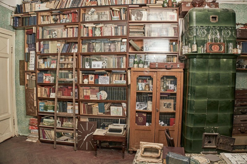 - Коммунальная комната самого писателя — с зелёным камином, первым советским телевизором, довоенным патефоном и бережно сохранёнными вещами