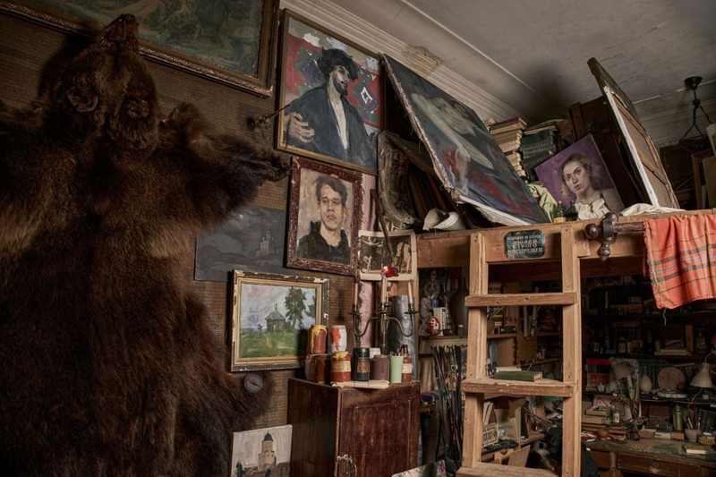 - Комната советской художницы Татьяны Милеант — настоящее пристанище творческого человека с оригинальным наслоением текстиля и множеством светильников, картинами и ворохом красок и кистей