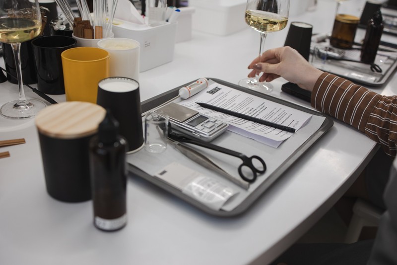 - Сначала мастер расскажет об эфирных маслах и других материалах, которые вы будете использовать в процессе — воске и фитилях. Вы узнаете, чем пахнет литсея кубеба, как выглядят пачули и бергамот и много другое