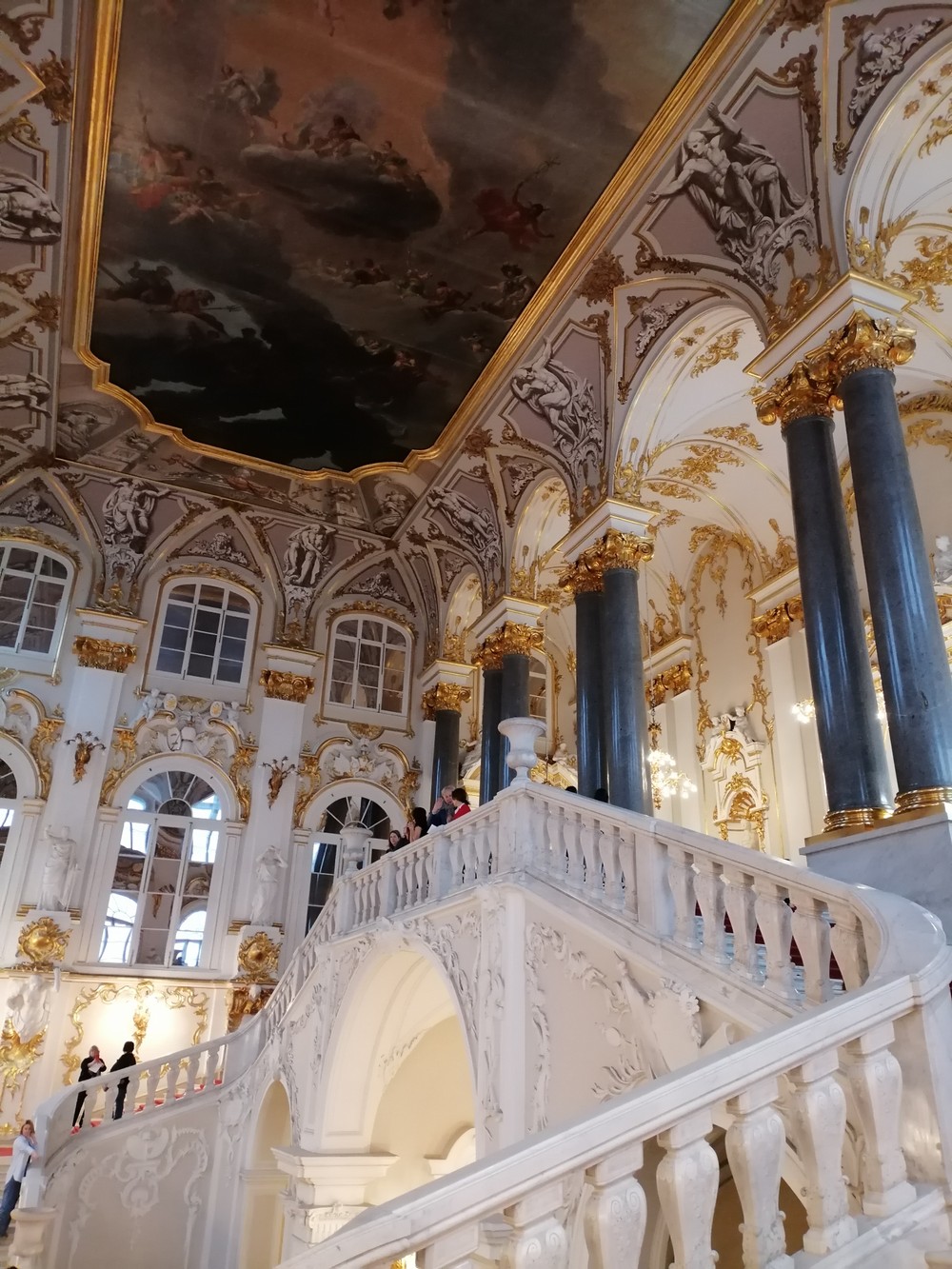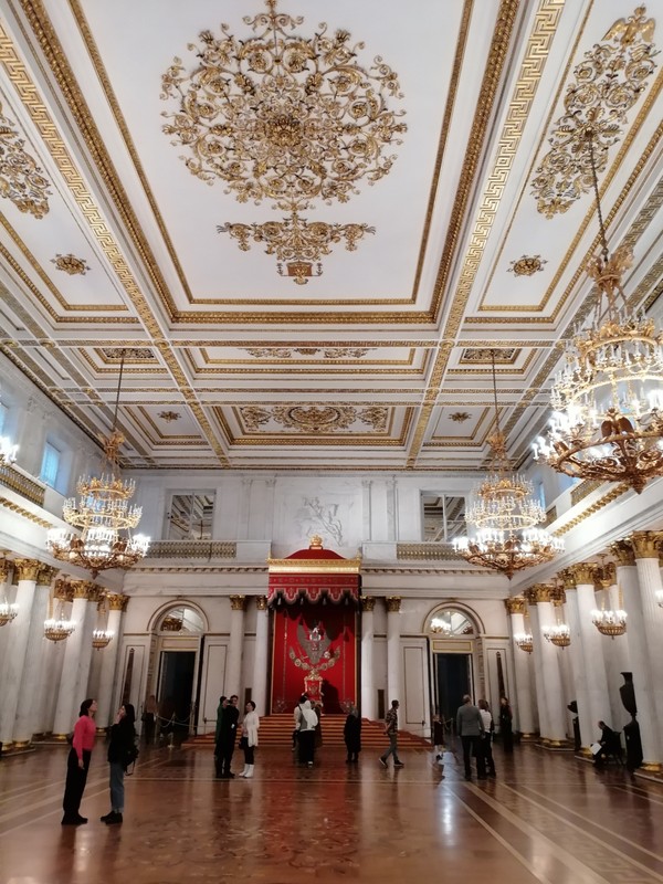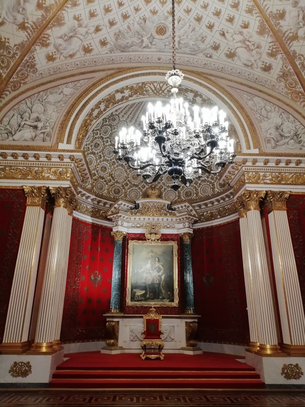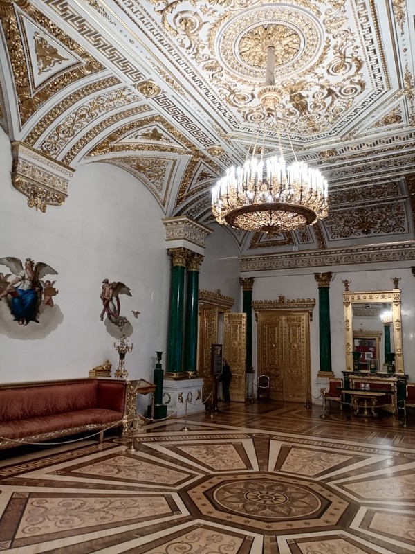 - Пройдём по парадным залам Зимнего дворца, изучая изящные интерьеры, любуясь анфиладой и рассматривая портреты Романовской галереи