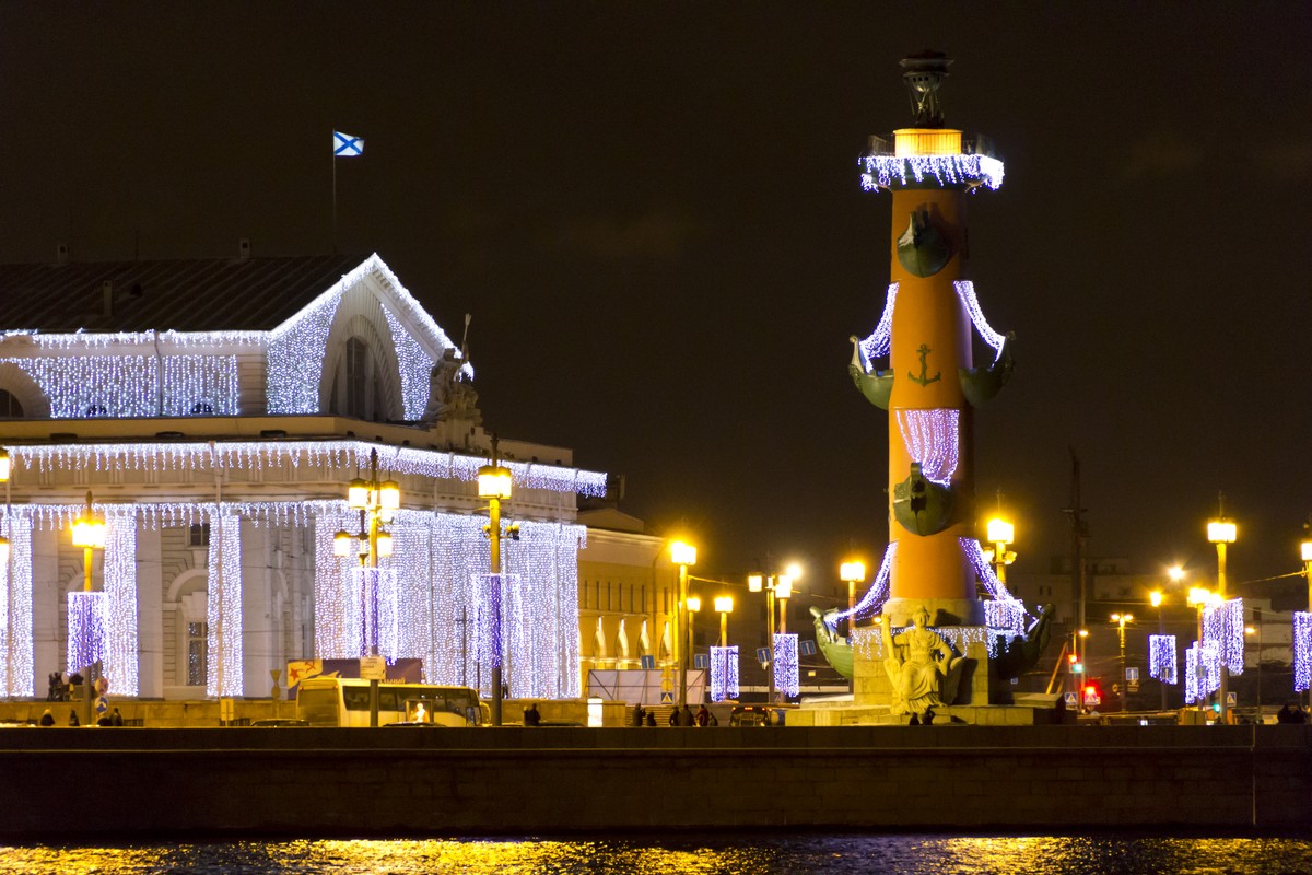 " Со второй половины декабря до Старого Нового года Санкт-Петербург необыкновенно красив. Ёлки, гирлянды, подсветка — всё сияет словно в сказке. На автобусе вы проедете по ярко украшенным центральным улицам и погрузитесь в праздничную атмосферу. А гид расскажет о традициях и обычаях празднования Нового Года в разных странах, а также зимних забавах в Северной столице. "