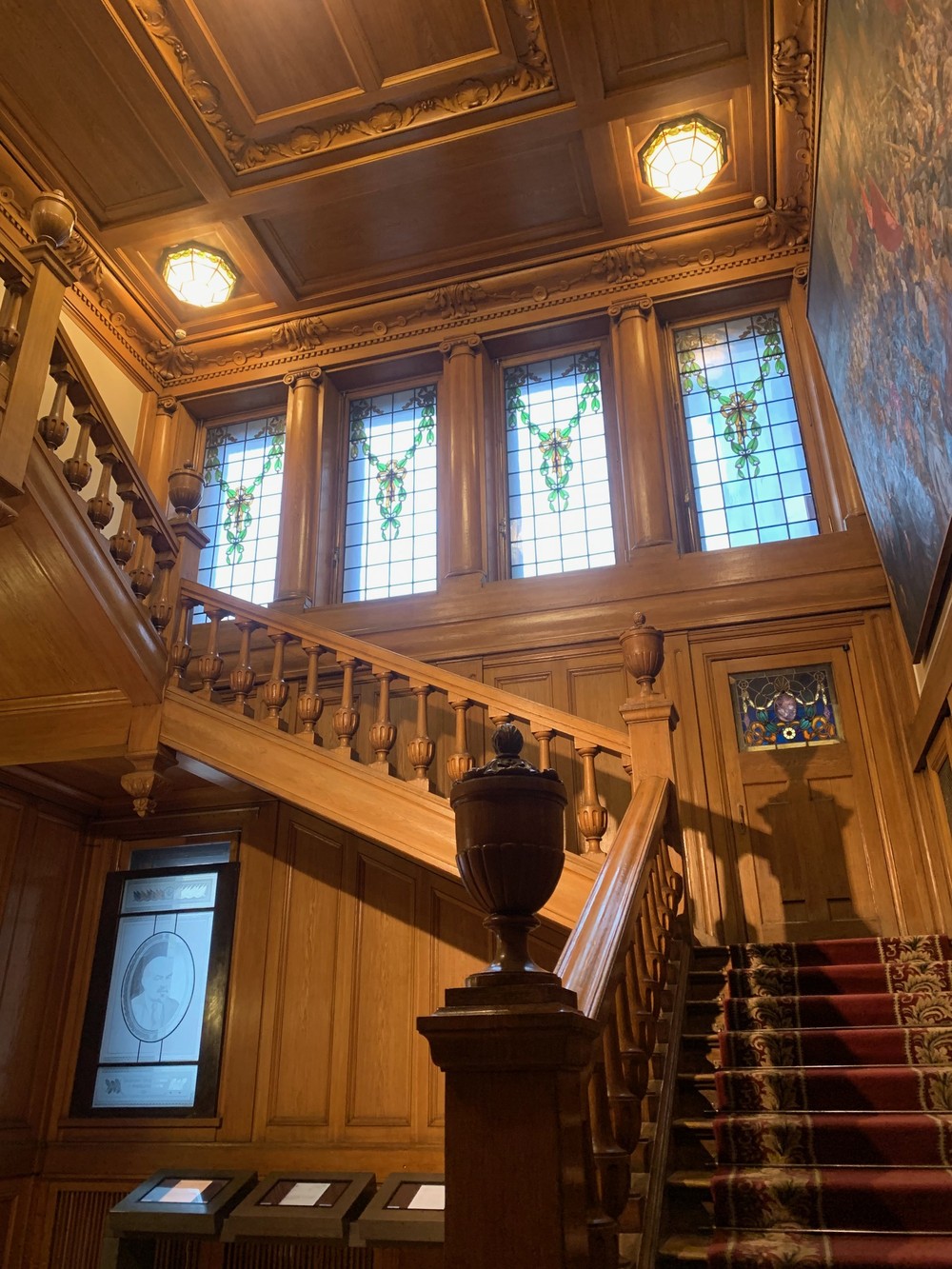 Побываете в гостях у богатого лесоторговца. Рассмотрите роскошную дубовую приёмную и красочные витражи, сделанные по эскизам Кузьмы Петрова-Водкина.
