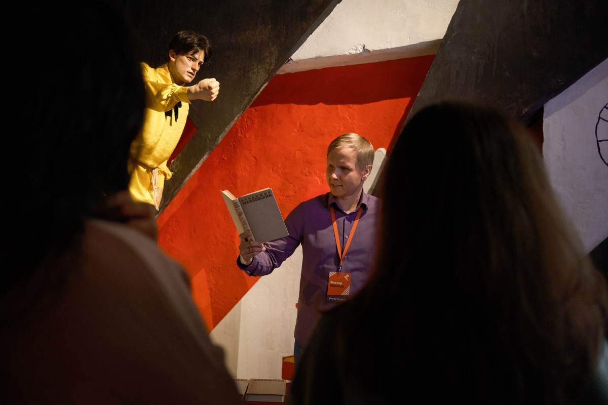 Вы пройдёте через сказочные иллюстрации Ивана Билибина, балетный класс Агриппины Вагановой и синие горы с картин Николая Рериха. Понаблюдаете за животными вместе с Бианки, станете участником перформанса в «Бродячей собаке» и уедете на бал в карете Золушки. А гид расскажет о героях проекта и расшифрует замысел экспозиции. "