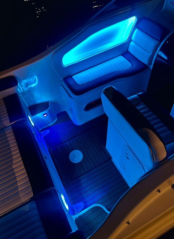 Прогулка проходит на катере «Фиеста» с ночной подсветкой, тёплыми пледами, вашей музыкой. Вы можете разнообразить ночной круиз своими напитками и закусками, а мы подготовим столик и бокалы под фуршет
