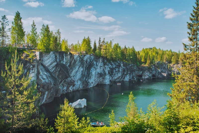 - Горный парк «Рускеала» — с красивыми природными пейзажами, где можно сделать яркие фото и прокатиться на троллее над каньоном