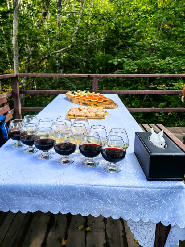 Перекус входит в стоимость (бутерброды с красной икрой, бокал красного вина, чай, кекс либо зефир)