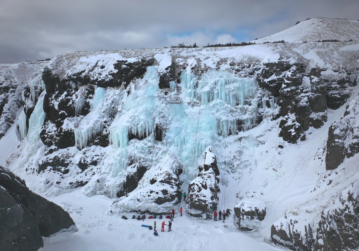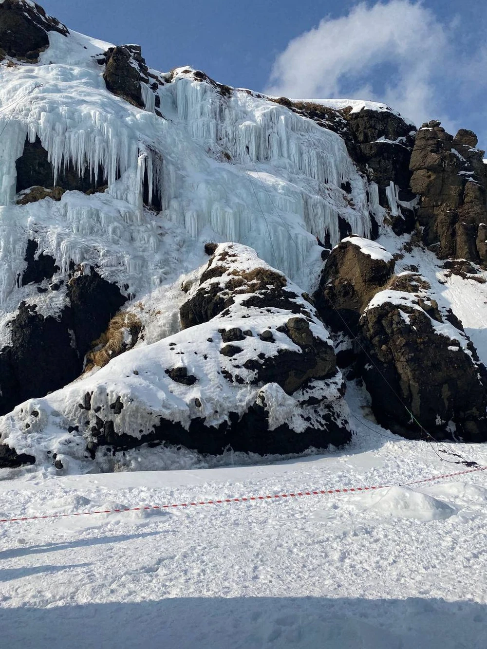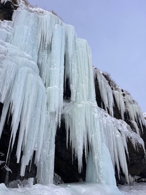 - ледяные каскады высотой до 30 метров, которые образуются из ручьёв, застывающих на крутых склонах