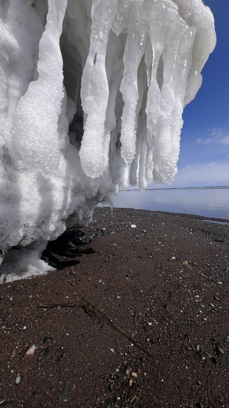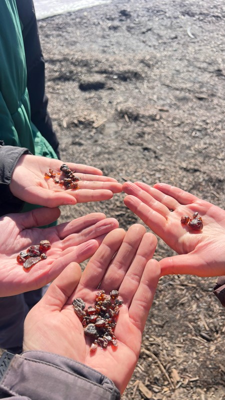 До появления торосов завернём на янтарный пляж и пособираем сахалинит.