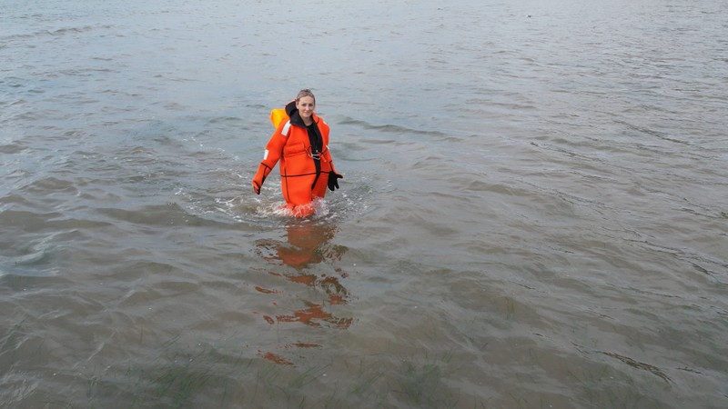 - Тёплый плавучий гидрокостюм позволяет оставаться на поверхности, не погружаясь вглубь. Он плотно прилегает к телу и лицу, скрывает уши и рот. Получается практически полная звукоизоляция и расслабление. А если ещё закрыть глаза или наоборот смотреть на небо… Представили?