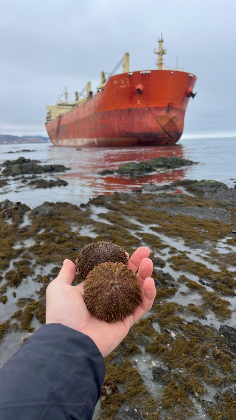 На окраине Невельска есть место, ставшее must see для путешественников: гигантский китайский сухогруз, безнадёжно севший на мель. Торжество стихии над всем мирским.